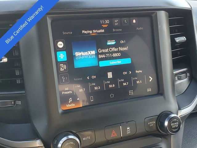Inside, the Big Horn offers a comfortable and well-appointed interior, with a premium cloth 40/20/40 split bench seat, power-adjustable driver's seat, and a user-friendly Uconnect 5 infotainment system with an 8.4-inch display. Stay connected with features like Apple CarPlay, Google Android Auto, and a 4G LTE Wi-Fi hotspot, while enjoying the convenience of steering wheel-mounted audio controls and a rearview camera.